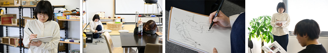 - K.K.(制作) さっき言ったことと被ってしまいますが、少人数なのでやりたいことに挑戦しやすい環境です。脚本志望の制作の同期がいるのですが、この間『キャストさん用のあらすじの作成』を依頼されていました。もちろん監督のチェックは入りますが、やりたいことに向かっているし、「そういう挑戦をさせてくれる会社なんだ」と見ていて思いました。自分自身で言うと、制作は各工程のいろいろな方々とやり取りをする機会があるので、その中でやりたいことを見つけていけたらいいなと思っています。今は制作進行が楽しいのでこのままやり続けたいですし、クリエイターの方の作品を見ながら仕事をしたいです。